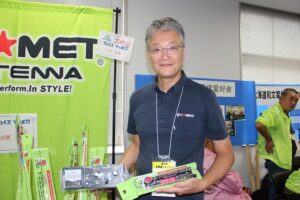 コメットというとアンテナのメーカーというイメージですが、最近はチューナーに力を入れているそうです。コメットのチューナーは手動式で、チューニングを合わせやすいそうです。また、公園を回るPOTAも脚光を浴びている今、リュックに入るようなアンテナも開発しているそうです。アンテナとチューナーの組合せで、移動運用を楽しんでほしいとのことでした。